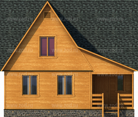 При небольшой площади застройки этот дом отличается довольно внушительным объемом. Внутренняя планировка выполнена так, что задействован каждый сантиметр полез- ной площади. В доме предусмотрен максимум удобств при полном отсутствии «пустых», неиспользуемых пространств.